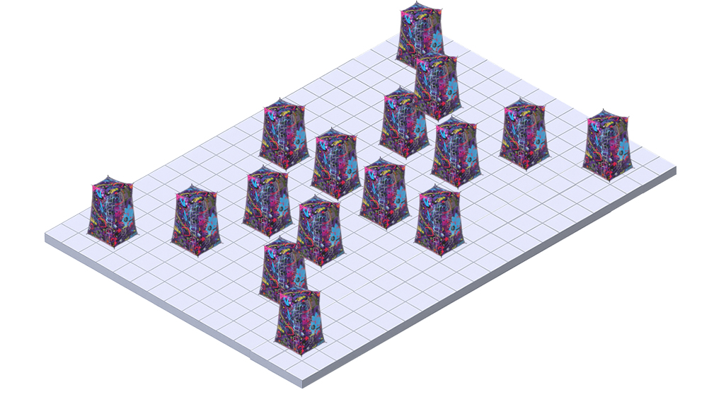 A field of 16 TOWER phygital shelters is a balanced solution for off-site events, 3x3 format competitions, and full-fledged training for players of all ages. The figures allow for practicing strategy, reaction, and teamwork. An ideal choice for clubs, entertainment centers, corporate events, and sports sections.