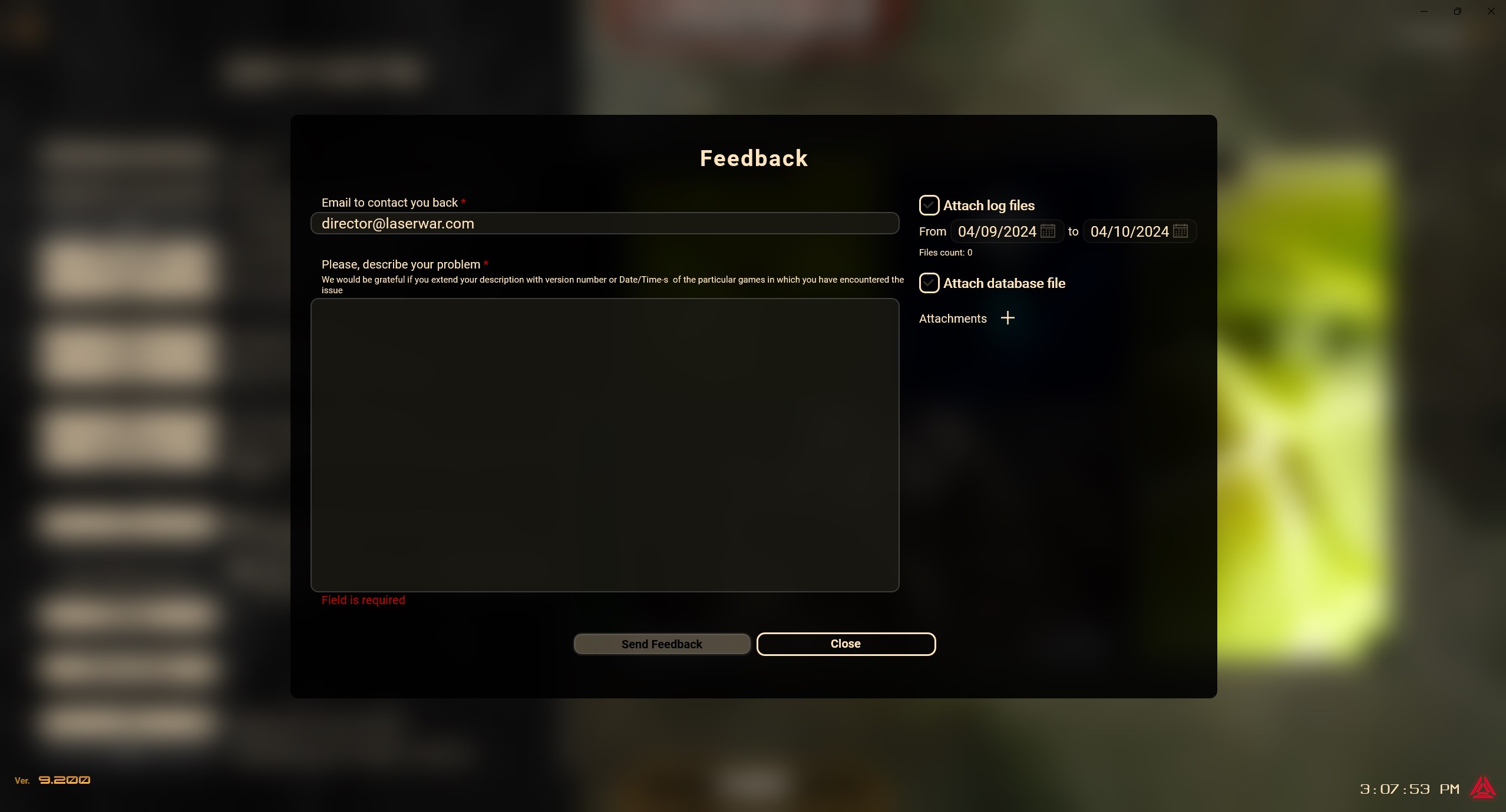 describe it in as much detail as possible, check the “Attach logs” (don’t forget to set the time interval) and “Attach a database” checkboxes, then send a report to us. As soon as possible, the developer will identify the causes of the failure and fix it. If necessary, he will contact you at the email address specified in the report.