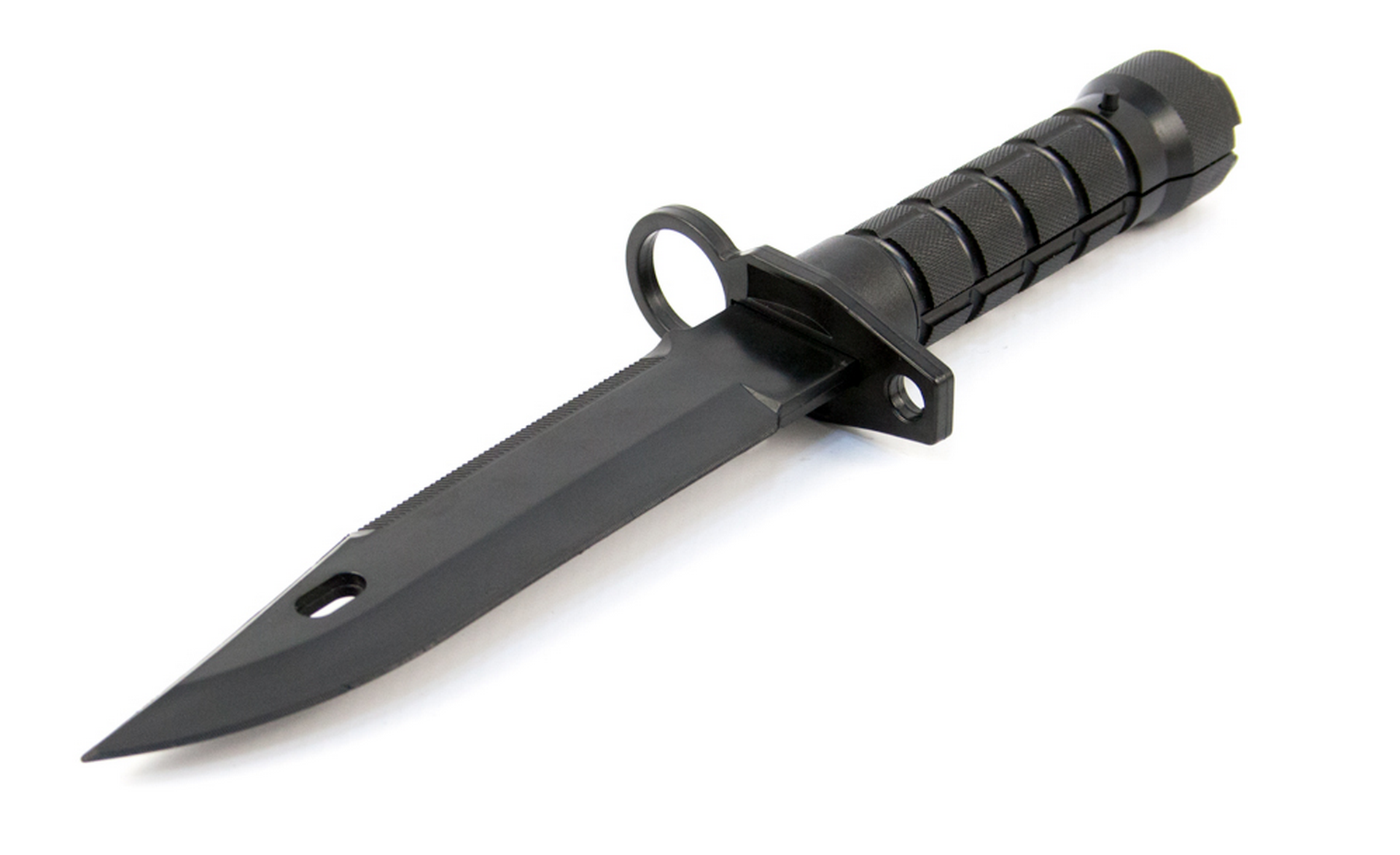 A stylish companion for the professional fighter, based on the training knife. The principle is simple. The IR diode is inside the hilt. Its signal is directed to the opposite side from the blade. Press the button to hit the enemy. He will instantly become a virtually dead player no matter how many health points he has. The range of impact is within 0.5 m depending on the lighting. Safe use is guaranteed by the handle-forward firing principle. The weight is only 80 g. The game set is powered by a small CR2032 3v battery. Thanks to the control processor's energy-saving mode, the battery life is up to one month. The game set includes a plastic cover.
