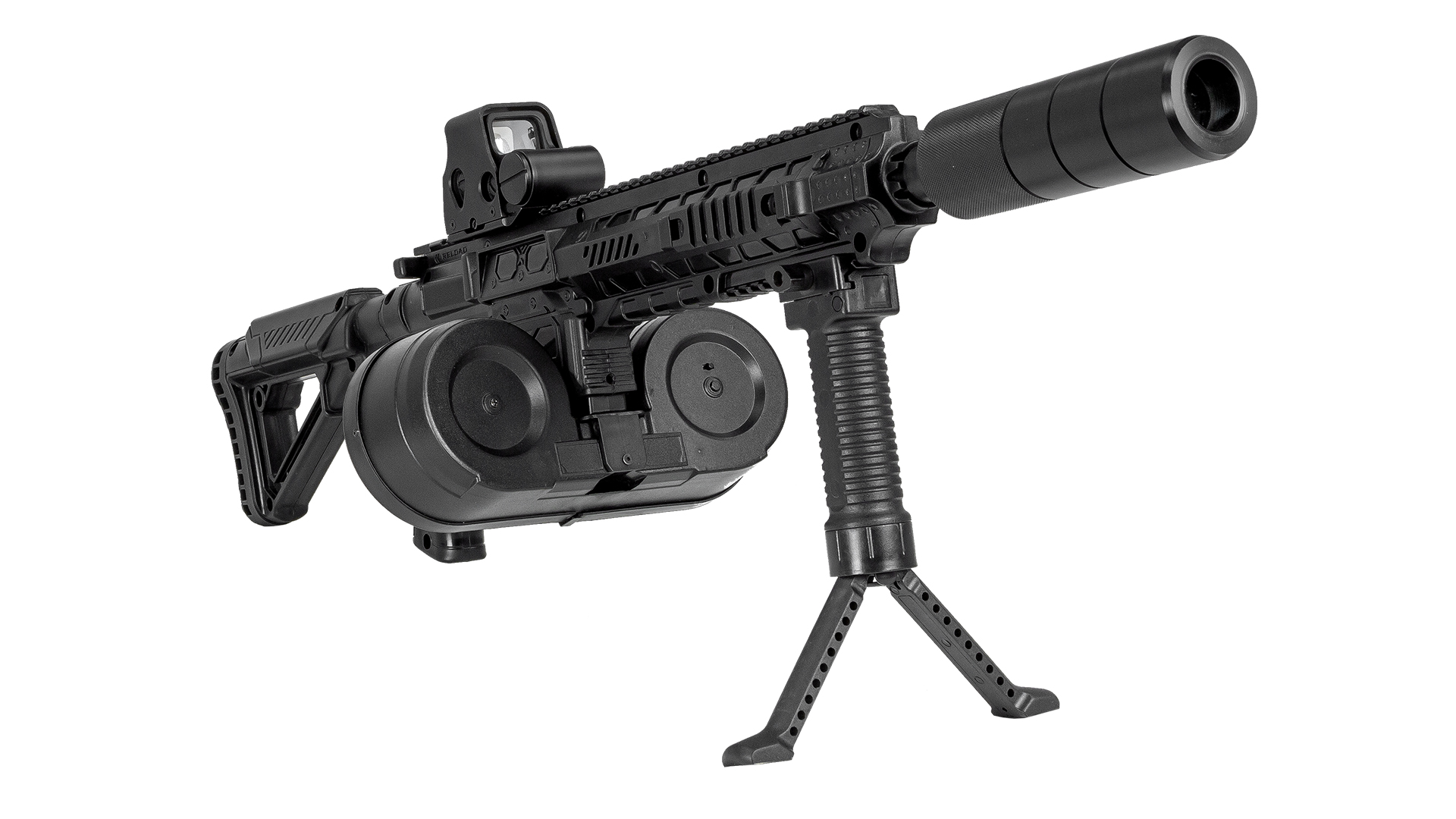 The second "descendant" of the Ranger. A recognizable high-strength plastic body, external gun tube, universal bipods that can be transformed into a tactical grip and a high-capacity "double drum" type magazine - this is what the MG-21 is all about. Berserk doesn't compete with heavy real combat prototypes. Not everyone would be able or willing to play with a 4-6 kg laser tag machine gun. Bersek therefore has a different target audience. It suits teenagers, petite girls and boys, and even kids.