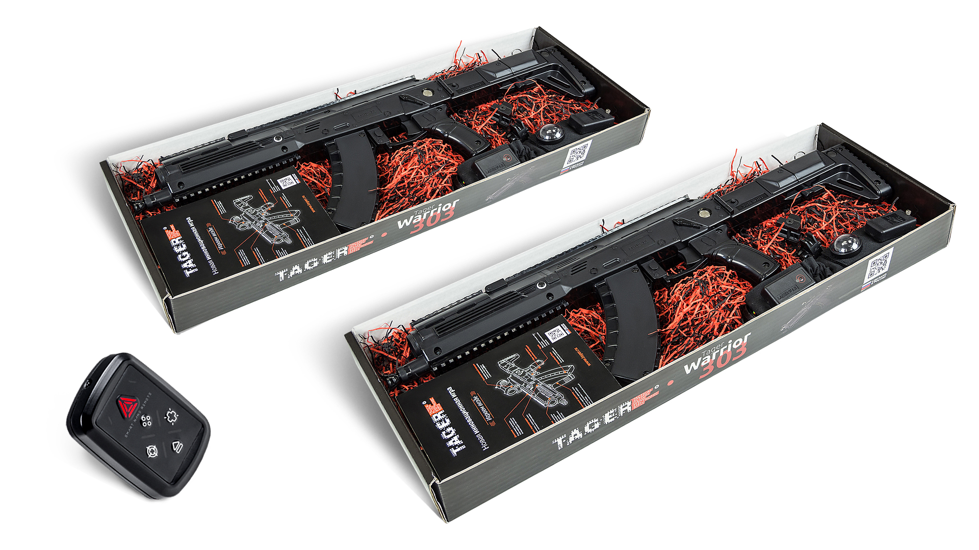 A perfect family set for laser tag. It is based on the laser tag Warrior 303 weapon, working on the principle "turn on and play". LASERWAR designers created the Warrior on the basis of the cult AK-12LT Predator, but the family model is designed for those who want to spend more time with loved ones and not to spend weekends going to the rental club. The weapon uses batteries that you can find in any store.