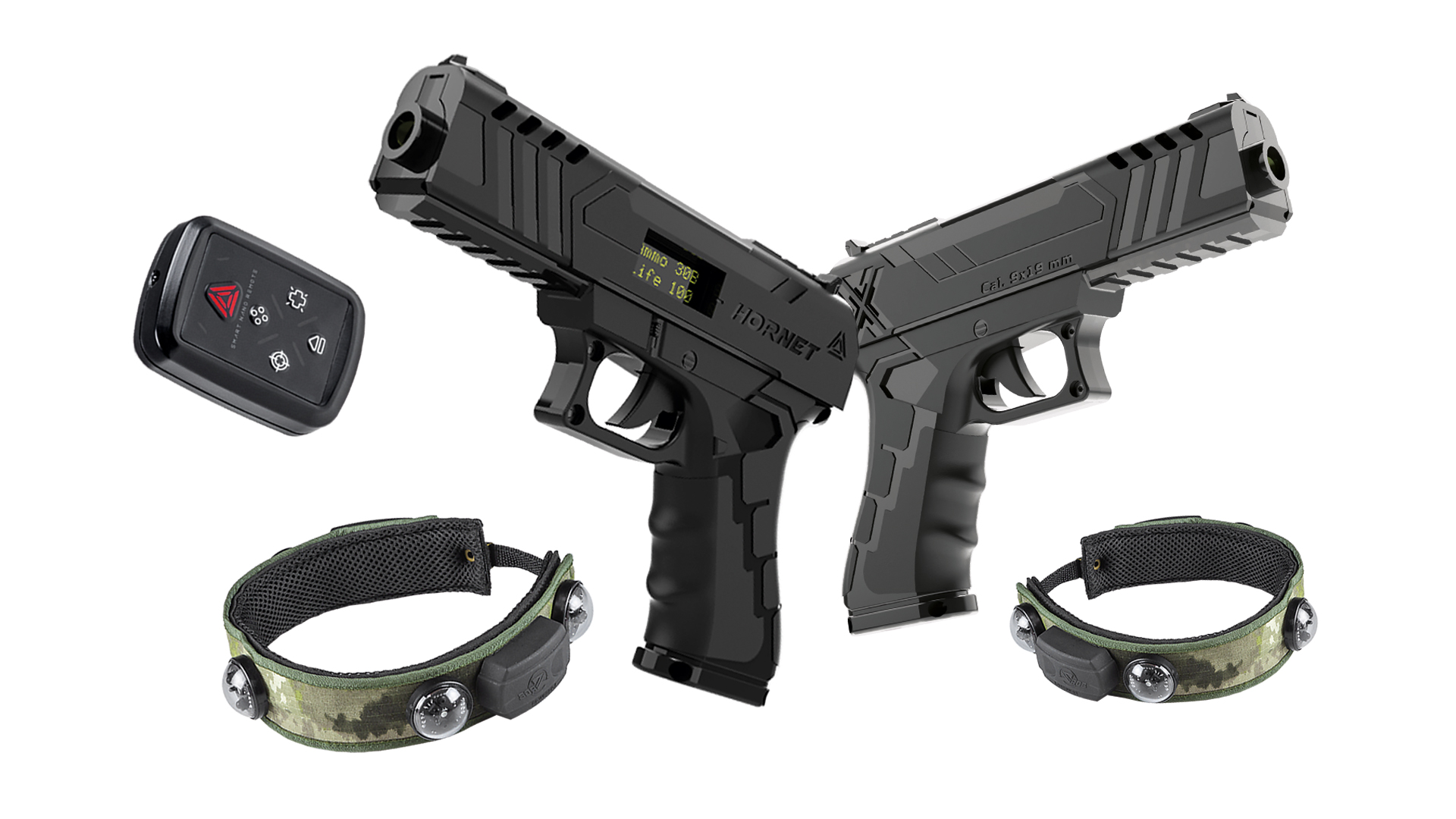 The set is based on an exclusive Hornet pistol, created by LASERWAR specifically for laser tag games. The high-precision Parallax optics allows you to hit the target from a distance of up to 100 meters. The weapon is always accurate in all weather conditions outside and indoors. The Hornet is not a plastic toy. Externally, it is almost indistinguishable from a combat pistol: the bolt reloading verifies that. The game set provides up to 20 hours of game performance on a single charge.